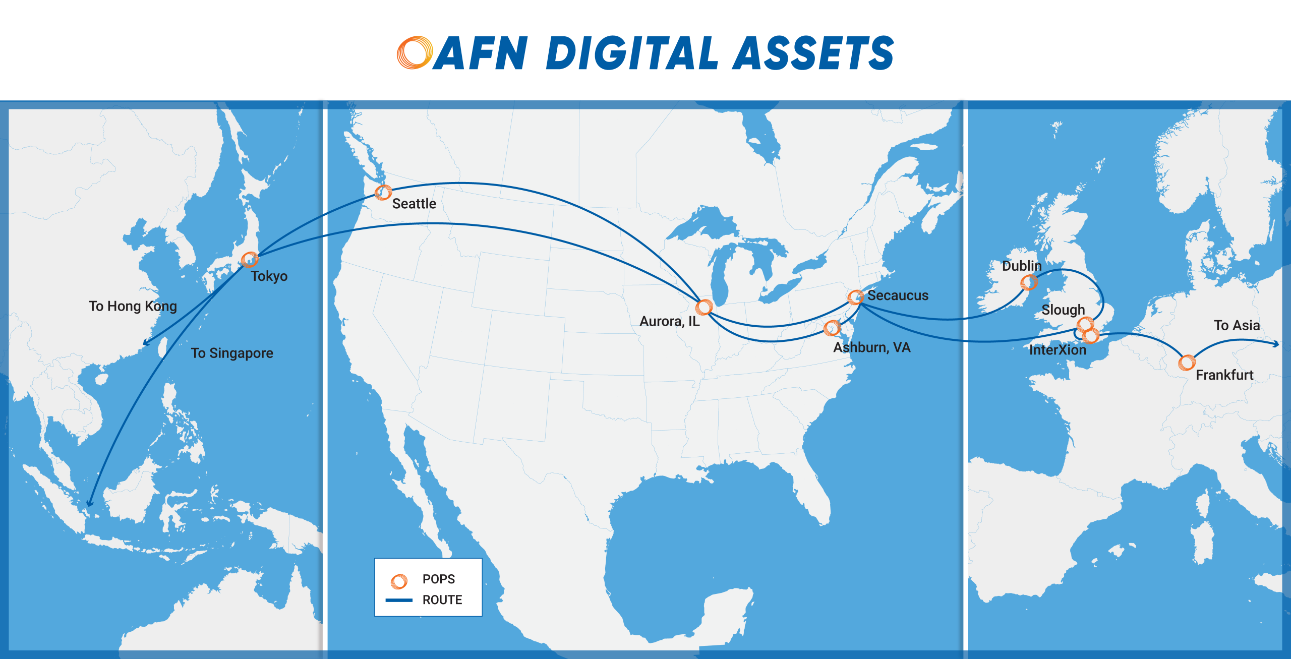 AFN’s global network extends across key financial markets in Asia, Europe and North America, providing the fastest routes and lowest latency for electronic trading. Our expanding network delivers exchange feeds and market connectivity through fiber and wireless transport, ensuring that financial institutions can access the most reliable and secure connections worldwide.