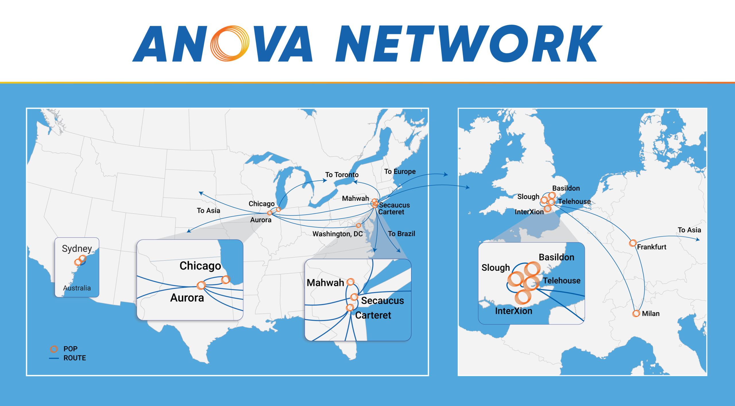 The Anova Network spans key financial and crypto markets across Asia, Europe and North America, providing the fastest and most reliable bandwidth and exchange feeds to the electronic trading sector. With our advanced fiber and wireless transport systems, we deliver ultra-low latency solutions that empower financial institutions to trade faster and more efficiently.